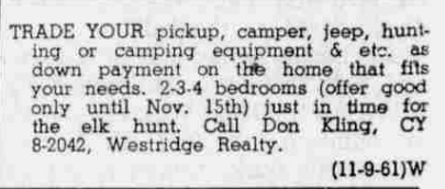 In the early 1960s, he founded Westridge Realty Company, a dynamic firm that handled residential developments across the Salt Lake Valley. In 1963, his company was appointed as the exclusive sales agent for Panorama Homes, a new subdivision by builders King and Gillespie in western Kearns. Kling’s team marketed the “luxury living” homes—priced between $13,000 and $20,000—with modern built-ins, ranges, and refrigerators. His real estate efforts extended into the neighboring communities of Granger and Hunter, helping many young families settle in the west-side suburbs during Utah’s postwar housing boom.