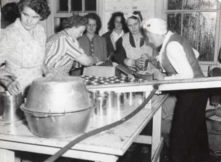 Eliza and her friends and neighbors involved in a Welfare canning project
