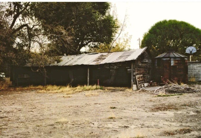 The 20-acre property originally included a machine shed constructed from salvaged railroad ties, a grain silo, and other outbuildings that served its agricultural purpose. The machine shed, approximately 15 by 45 feet, featured a corrugated metal roof and open front, while the adjacent grain silo, about 12 feet tall, preserved the rural character of the site. Together, these structures represent the farmstead origins of this part of West Valley City.