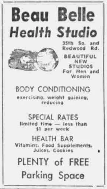 Today, exercise bikes, gyms, and health clubs seem to be on every corner—but back in the late 1950s, Beau Belle Health Studios stood nearly alone in offering “full body conditioning” in West Valley. Their 1958 ad promised beautiful new studios for men and women with weight gaining, reducing, and conditioning programs for less than $1 a week. The “Health Bar” offered vitamins, food supplements, juices, and even health cookies—a novelty for the time.